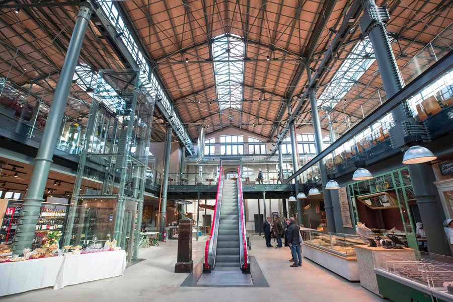L’innovazione principale del progetto è consistita nella creazione di una nuova superficie totalmente svincolata dall’involucro esterno, sostenuta dai pilastri in ghisa esistenti, opportunamente recuperati. Tale soluzione ha permesso di valorizzare l’imponenza della volumetria interna originaria e l’asse della navata centrale del mercato. L’impalcato, posto a quota +4,86 metri, ha portato la superficie calpestabile a circa 4.000 m² (con un incremento di circa 1.400 m²) ed è caratterizzato da un ampio foro centrale, allineato alla serliana dell’atrio d’ingresso, in cui si trovano le risalite verticali.